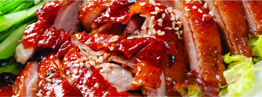 mit Ei, Sojasprossen, knusprig gebackene Ente, dazu Sauce nach Wahl
