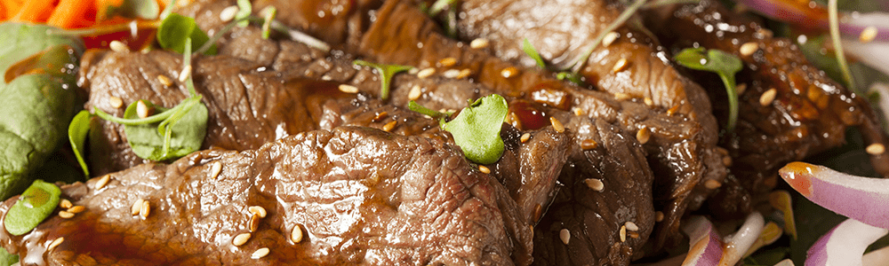 mit verschiedenen Fleischsorten und Gemüse unterlegt, scharf